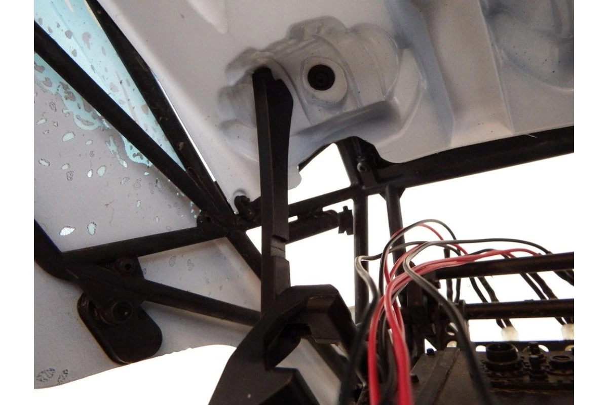 T-Bone Racing Yeti Body Support Bar mounts to the stock Roll Cage and pivots up to hold the body out of the way while changing batteries, working on ESC, Receiver, Servo or etc. The body stays out of the way without having to remove the rear body clips. Fast and easy.It is designed to pivot to the front or the rear of the car (your choice). It works either way.