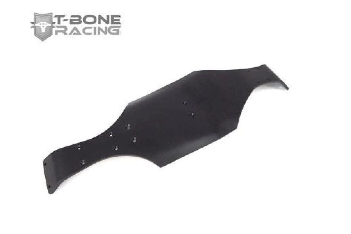 T-Bone Racing chassis brace for the 1/16 E-Revo is made of .125″ black nylon and weighs 2.5 oz. It is mounted with 12 screws to spread the impact across the whole length of your chassis. T-Bone use aluminum standoffs to mount between the stock skid/chassis and their brace, providing clearance for the A-Arms. The brace comes with 2 holes front and rear to mount the optional bolt-on bumpers.