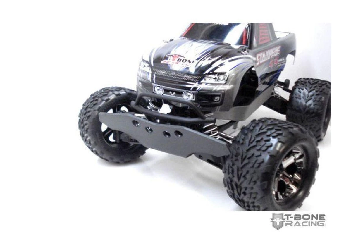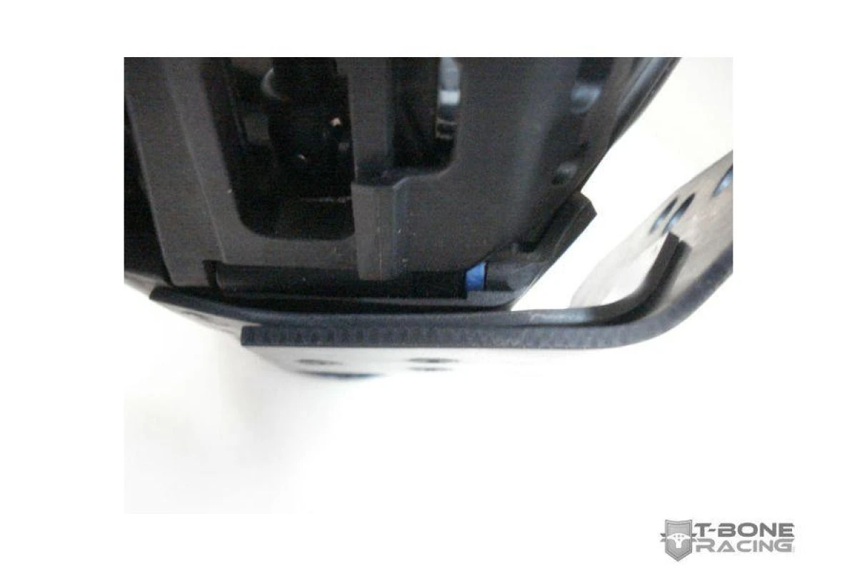 Bumper mounts under the chassis. A .093″ nylon brace fits between bumper and chassis.Note: Stock bumper and skid are to remain on your truck. The r10 loses the privious Delrin Rod and hasa nylon brace in its place.